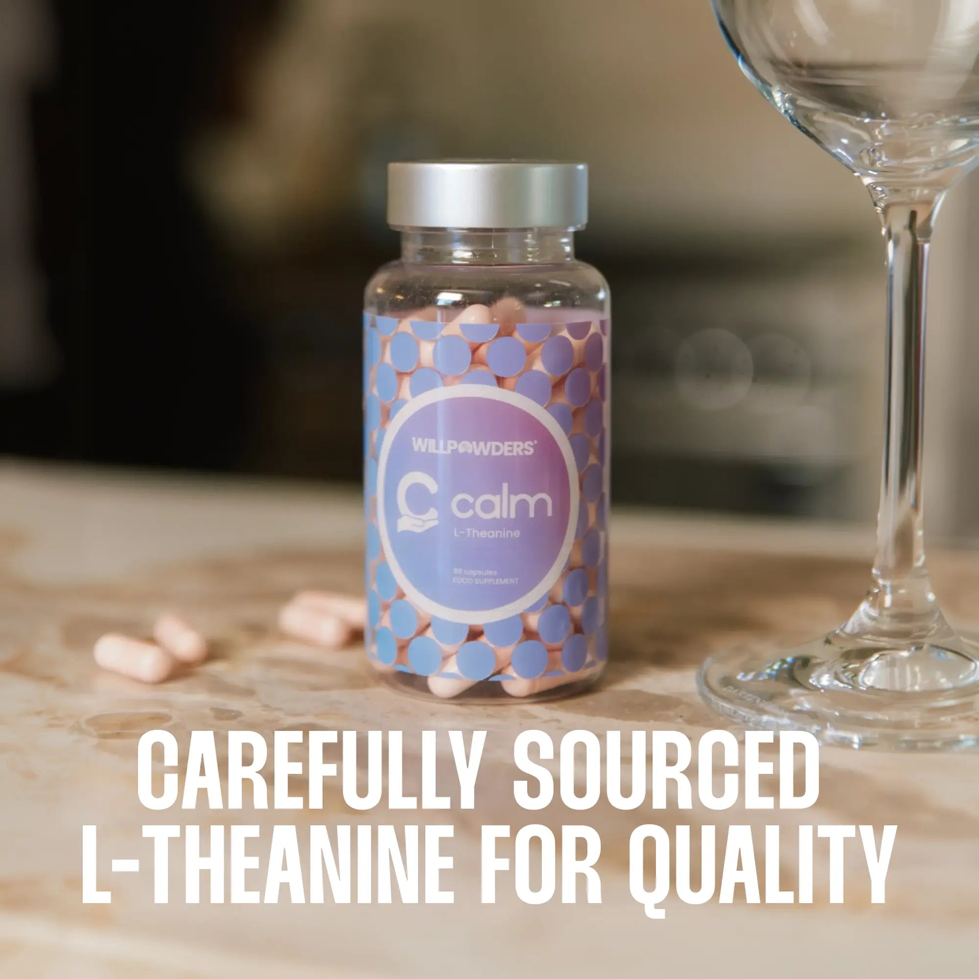 Stressed? Wired? Unwind and thrive with L-theanine, your daily dose of Calm. L-theanine is a powerful amino acid that gives a touch of tranquility to your day, minus the drowsiness.