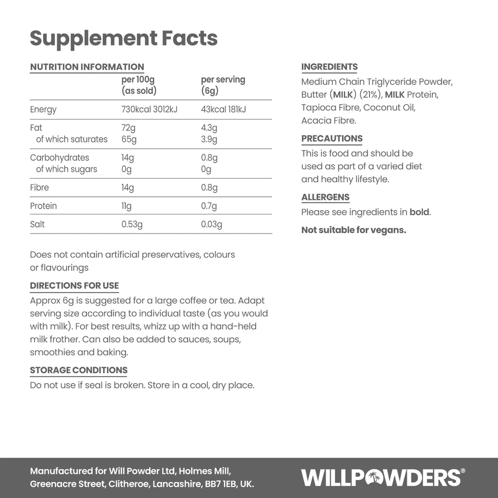 Our MCT Keto Creamer contains butter and milk. This means it is not suitable for individuals with a dairy allergy.