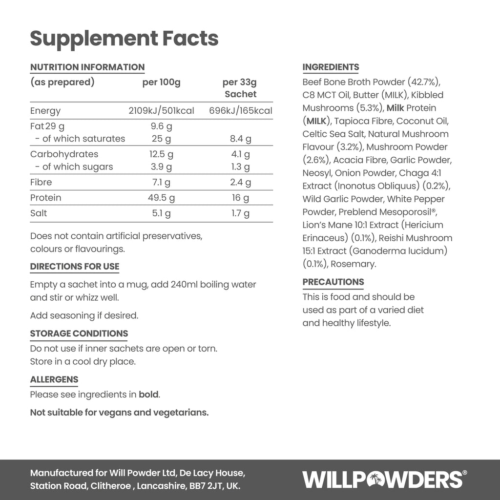No time to make lunch? Desk drawer empty? On it with bone broth sachets, but not vibing with a mugful of flavourless boiled bones? Enter creamy, dreamy, flavourful WillPowders Bone Broth Soup – your emergency escape hatch when you’re caught short. Packed with our craving crushing C8 MCT Keto Creamer, it’s functional, convenient food without the compromise. Time to fuel, not crash at 3pm. Simply grab your fave mug. Bang in some hot water. Stir and start winning.