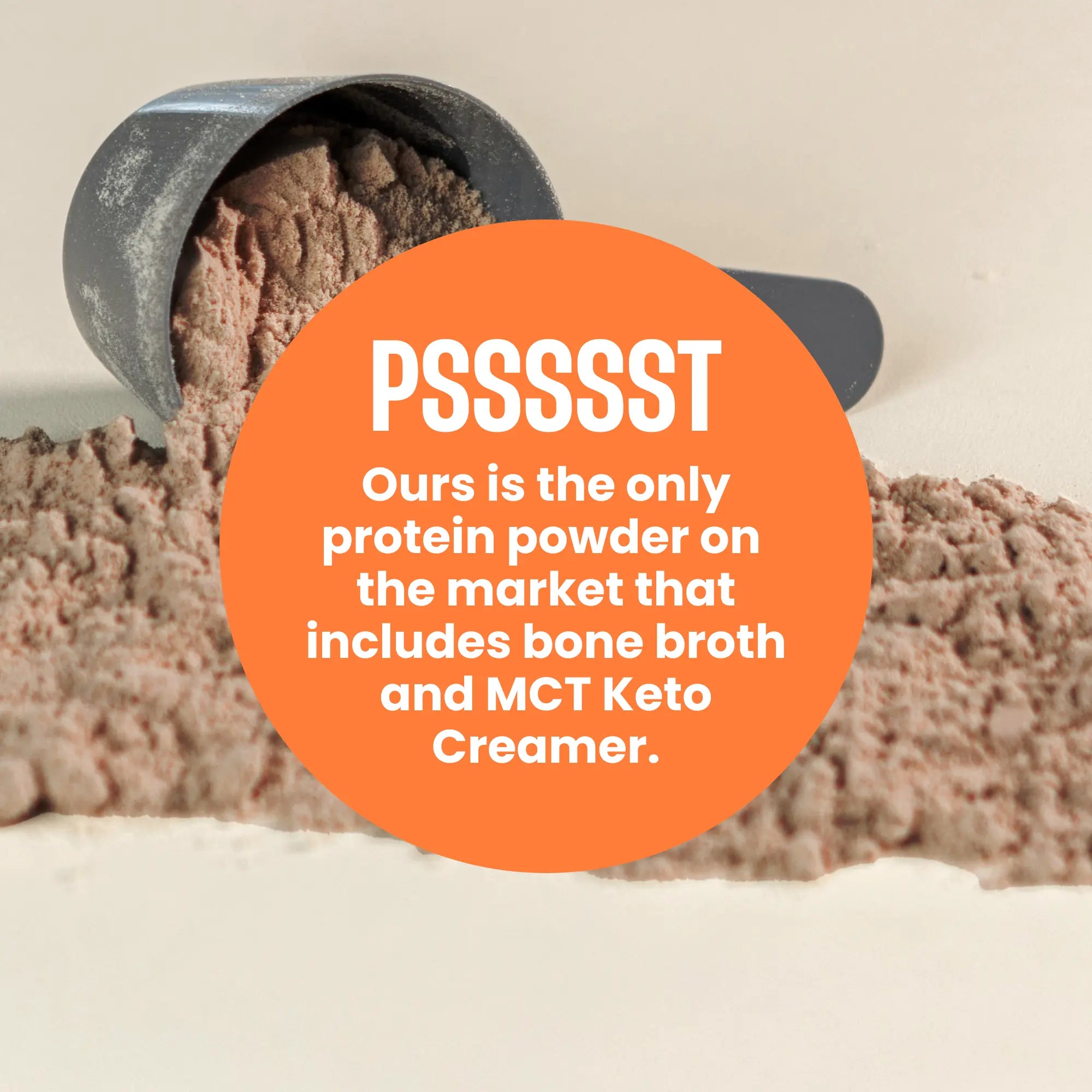 - Craving crushing – the only protein powder on the market to contain bone broth and MCT keto creamer